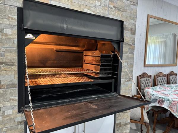 The Braai Area is indoor, forming part of the Living Area, there is also built in cupboards next to the Braai, suitable for a Bar fridge.