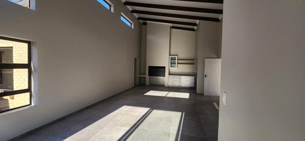 An indoor braai area with eye-catching feature stonework flows seamlessly from the living space, perfect for year-round entertaining. The double automated garage provides direct access to the home, while the paved driveway and low-maintenance garden add convenience and curb appeal.