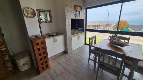 Large Open Plan Lounge & Diningroom that effortlessly connects to the Enclosed Balcony with sliding windows for a fresh breeze, with breathtaking Ocean views stretching as far as Vleesbaai. Enjoy the picture perfect distant sea views whilst having a BBQ with dear family & Friends! Built in Braai installed.