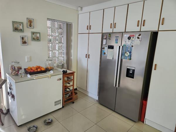 There is three garages with outside storage/working space. There is build in 12 Solar Panels, 2 geysers, 2 batteries x 5 KW each.