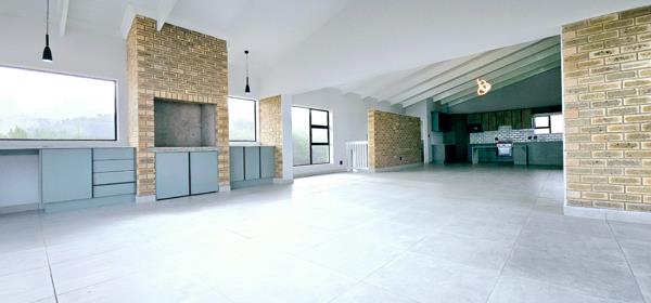 Step through the stylish glass and aluminium front door into expansive open-plan living and dining areas designed for both comfort and entertaining. High vaulted ceilings with exposed beams, sleek laminated flooring, and large sea-facing sliding doors flood the space with natural light. A built-in braai framed by Caesar stone countertops and large windows completes the entertainer''s dream.