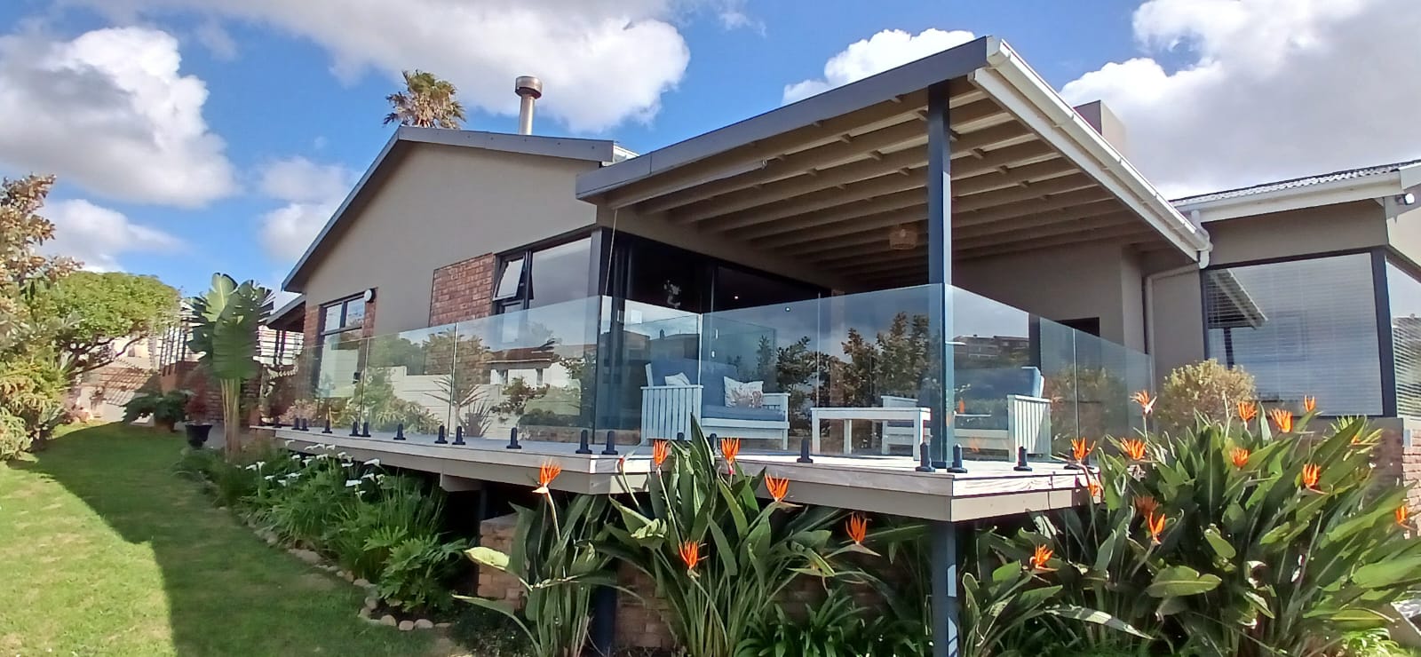 You exit the Lounge area onto a undercover deck with a build in braai. You have spectacular sea views from the deck where you can entertain or just sit and appreciate the view of the white breakers beneath you.