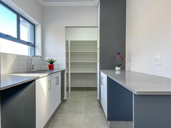 At the heart of the home lies a contemporary kitchen, featuring sleek quartz countertops, ample cabinetry, a walk-in pantry, scullery, and a dedicated coffee station designed to cater to both everyday living and effortless entertaining.