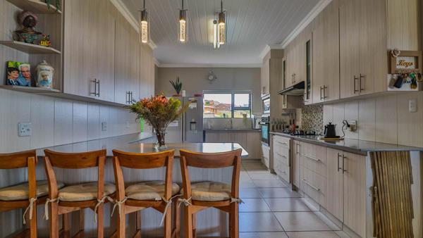 The heart of the home is a spacious open-plan living area that flows effortlessly from a stylish, well-appointed kitchen with ample scullery and pantry space, to a dining and lounge area perfect for relaxing or entertaining. A built-in stainless-steel braai adds a touch of luxury to indoor gatherings, while the enclosed veranda offers uninterrupted ocean views and a front-row seat to the natural splendour of the conservancy.