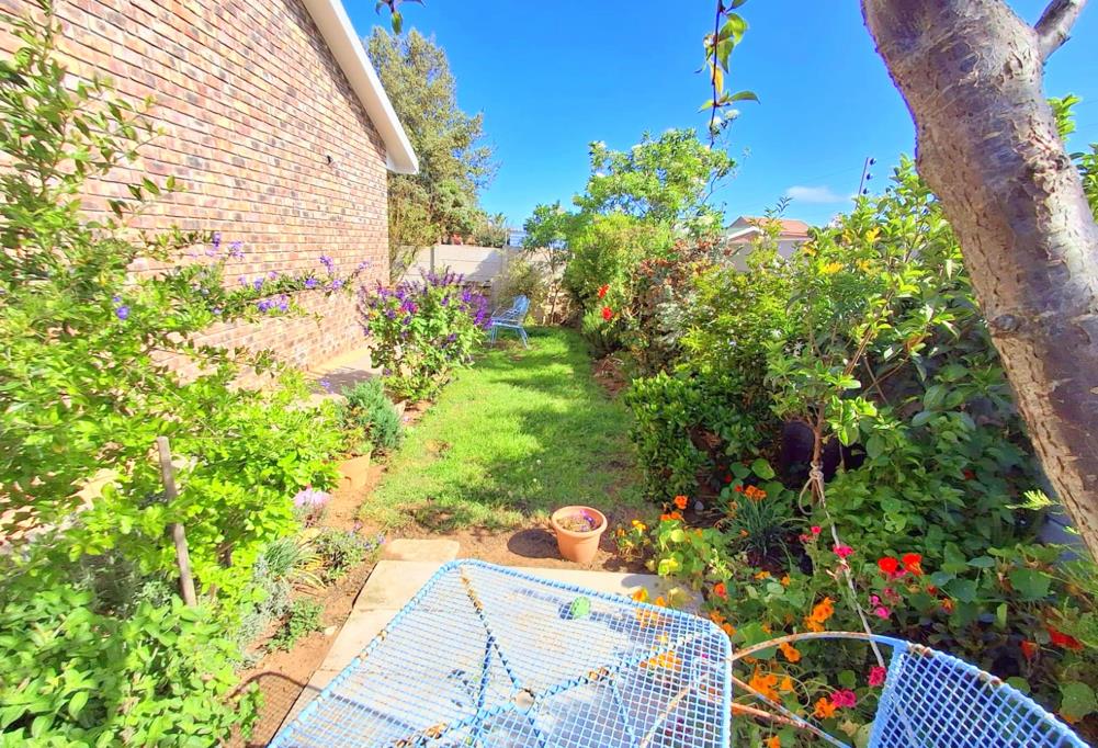 Their dog is lying peacefully at their feet and the sprinkler is shhh-shhhing in the lush litttle garden.