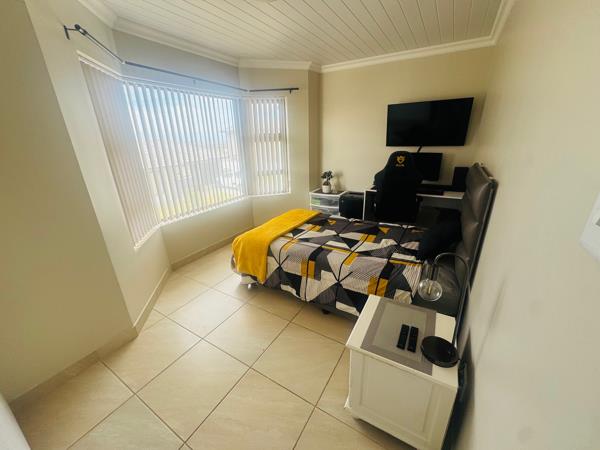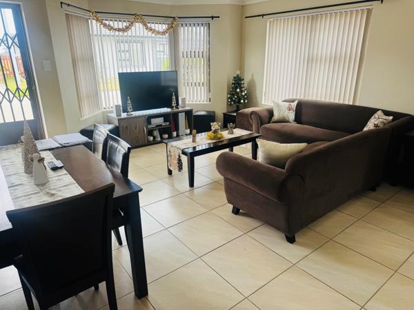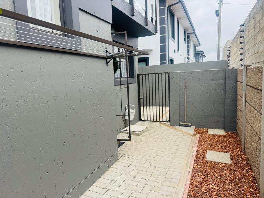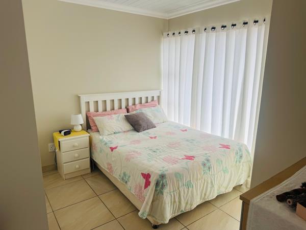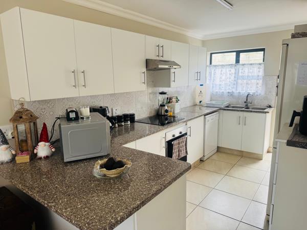 This townhouse offers an open plan lounge and modern kitchen. There is a welcoming braai area in the backyard where you can relax and entertain friends. Extra parking space beside the house and a single garage. This estate is pet-friendly. Upstairs, you will find two bedrooms that share a bathroom. Sliding doors open up onto a patio with distant seaviews.