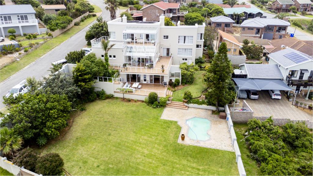 The living areas links with a braai room, ideal for hosting friends and family while enjoying the uninterrupted sea views. The outdoor space includes a sparkling pool, perfect for relaxing or entertaining, and the double garage provides convenient, secure parking.