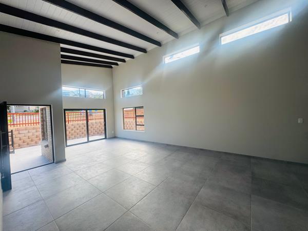 This 186m2 duet is immaculate and brand new. The attention to detail is remarkable. Walk into an open plan lounge with elevated ceiling that creates a sense of spaciousness and grandeur. A built-in braai ensures cosy family get-togethers. The lounge flows into the kitchen and scullery.