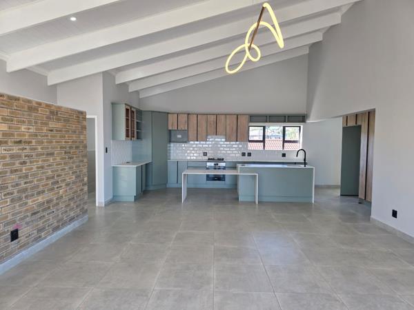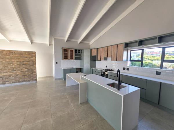 Tucked alongside a serene greenbelt in Dana Bays Nature Conservancy, this newly built duet home is a haven of light, space, and scenic views. Thoughtfully designed with clean, modern finishes, this home embraces open living while staying deeply connected to its natural setting. From the moment you enter through the sleek glass front door, youre welcomed into a flowing open-plan living area with high ceilings, exposed beams, and large sliding doors. These windows draw in natural light and reveal expansive ocean views, while the built-in braai area makes entertaining effortless.