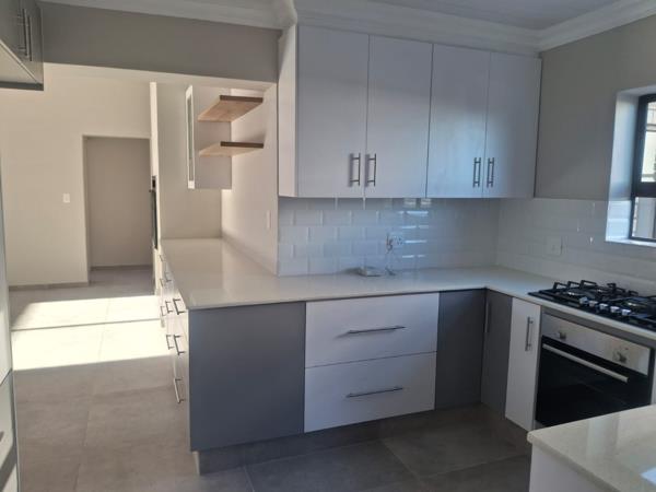 Located in the heart of Dana Bay is this stunning 3-bedroom, 2-bathroom home (including en-suite bathroom) It is cleverly designed to allow easy access into the double garage. The open-plan living/dining room has a built-in braai and a spectacular open-plan kitchen with scullery, laundry and ample built-in cupboards.