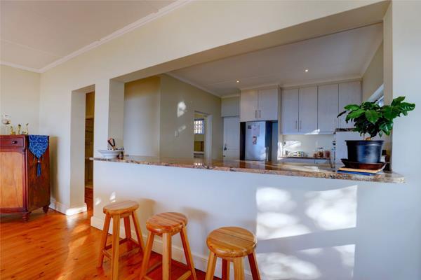Rich in character, the home showcases original Oregon pine floors and graceful arched doorways, a nod to a bygone era that forms part of Mossel Bays treasured history. The main bedroom includes an en-suite bathroom and a cheerful bay window alcove the perfect reading nook.