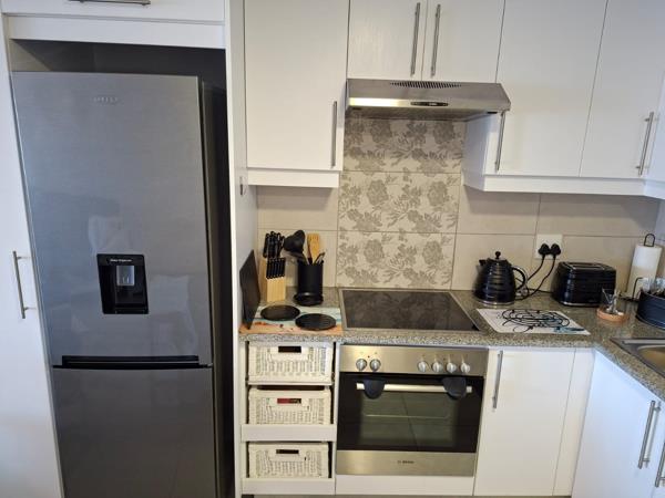 The apartment features an open-plan living and dining area that flows onto a private verandah with stunning sea and mountain views perfect for relaxing or entertaining. The modern kitchen comes equipped with quality appliances, including a dishwasher, fridge, microwave, and washing machine. Each of the three bedrooms is tastefully furnished.