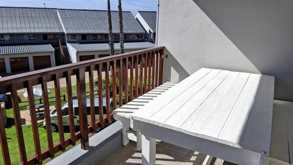 The open-plan living area flows onto a balcony with tranquil views over the communal swimming pool, lush green lawns, and braai facilities perfect for relaxing or entertaining. With two comfortable bedrooms and a well-appointed bathroom, the layout is designed for both comfort and functionality.
