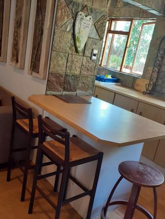 On ground level, find a double garage and one one-bedroom flat complete with a kitchen. The upstairs balcony provides a covered stoep for the flat and also boasts views of Dias Beach.