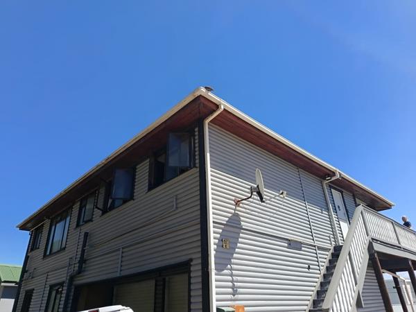 Imagine a charming, contemporary wooden double-storey house nestled just a short stroll from Diaz Beach. The exterior shows light-painted timber cladding. Steps lead up to a cosy balcony with views of the bayEnter into an open plan lounge, dining and kitchen. The wash-up area is conveniently hidden. On this level, you also find 2 bedrooms that share a bathroom with a bathtub and a main bedroom with a shower ensuite.