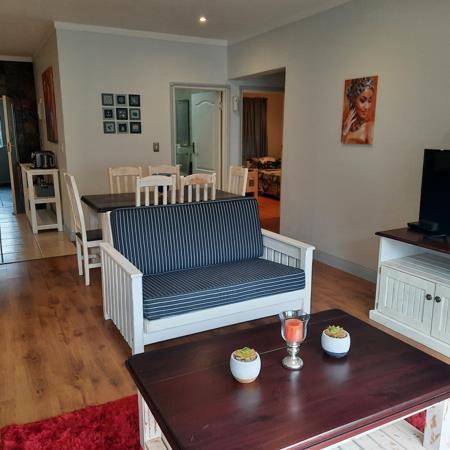 Lounge is open plan with kitchen. Lounge has patio doors going out to the private braai.