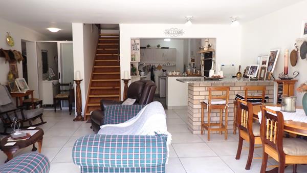 This is a family home in Eco Estate Mossel Bay that is not to be missed. It ticks all the boxes. Neat spacious and well maintained. Situated on a corner stand giving you that extra privacy. Here is 24-hour manned security. Pets are welcome. Inside and outside built-in-braai. Large patio. The main bedroom upper level has well equipped bathroom. Sliding doors leading out to the balcony where you can sit, relax and enjoy the surrounding scenery. Single garage is extended, can be utilized as workshop or storage. Kitchen is fitted with granite counter tops, gas hob and electrical oven. One can with ease work from home. Fibre is installed. The highlights are the communal childrens playpark and communal swimming pool or go for a swim in the ocean, there is a private entrance to the beach. Go for a walk, visit the estuary and enjoy the bird life that is in abundance. This is a home that can be utilized for permanent or holiday living. Rent out and generate a good income.