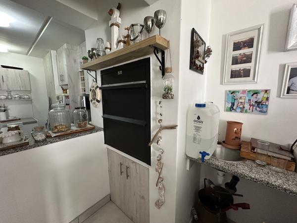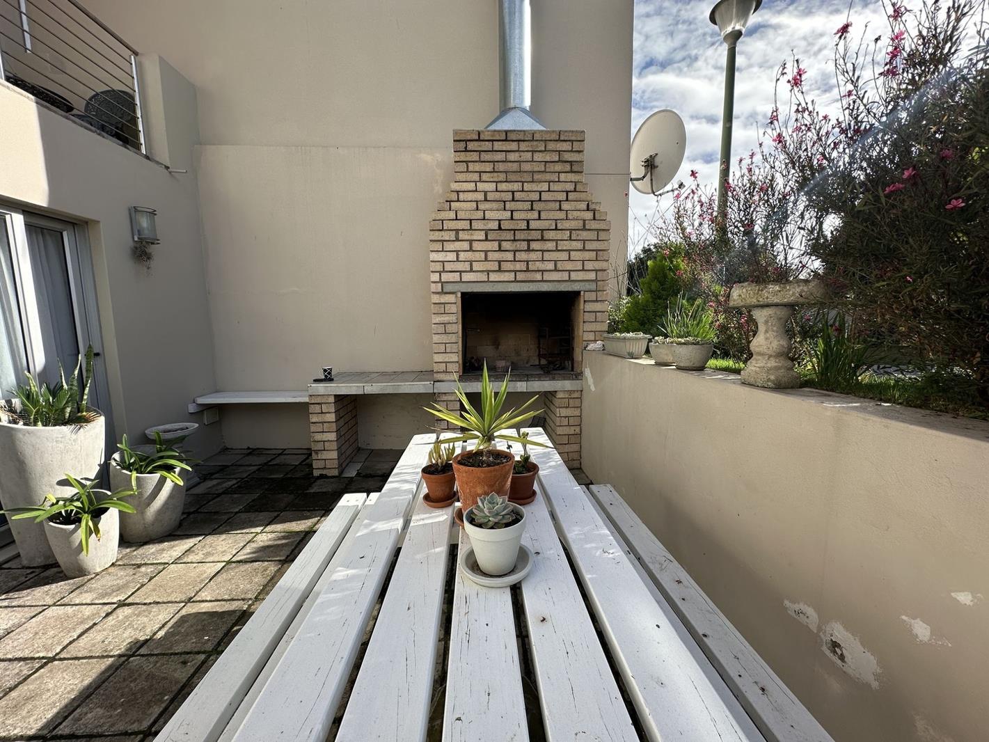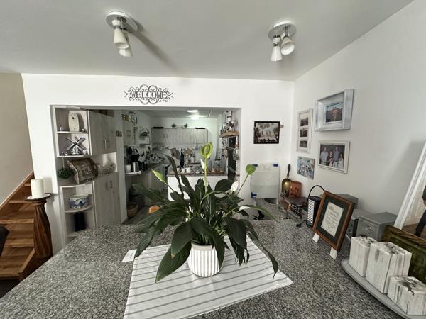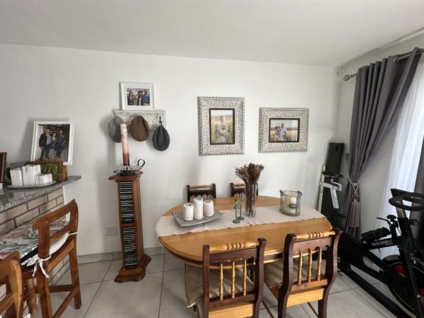 The open-plan living and dining area downstairs is designed for effortless entertaining. A built-in braai adds warmth and charm, making it the ideal space for gatherings with family and friends. The well-appointed kitchen features a gas stove, ensuring energy efficiency and ease of cooking.