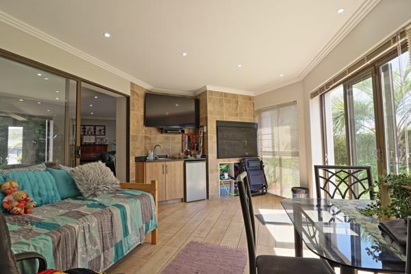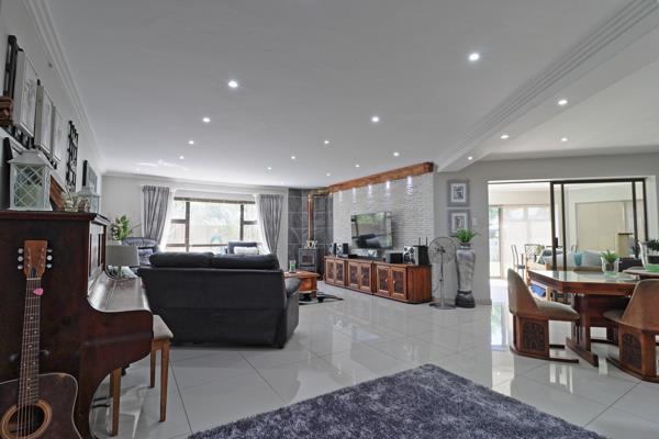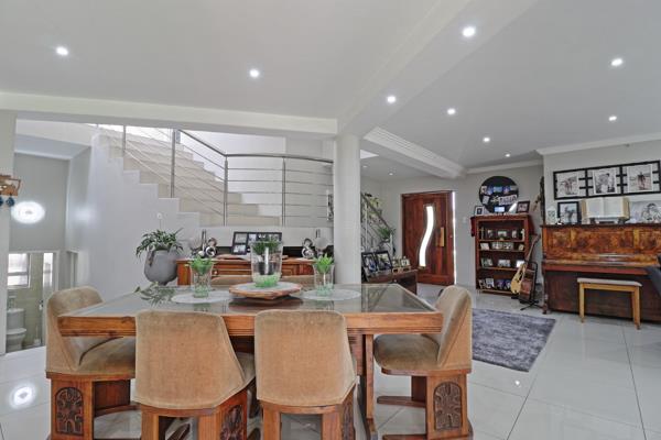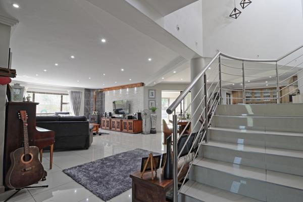 This modern home has large flee-flowing areas designed for comfortable living and easy entertainment. Designed as two-homes-in-one, the house offers dual living possibilities. On entry level you will find an open plan living and dining area, braai room opening to the garden, kitchen and scullery, main en suite bedroom with walk-in cupboard, guest toilet and the double garage.
