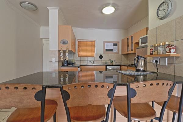 Open plan apartment with a spacious living area leading to an enclosed balcony that overlooks the beautiful gardens of the complex. The main bedroom is en suite and another full bathroom services the other 2 bedrooms and guests. A lock-up garage provides secure parking for your vehicle and extra storage space. Plenty of visitors parking also available. The apartment is on offer together with stylish and functional furniture.