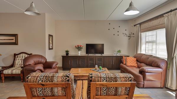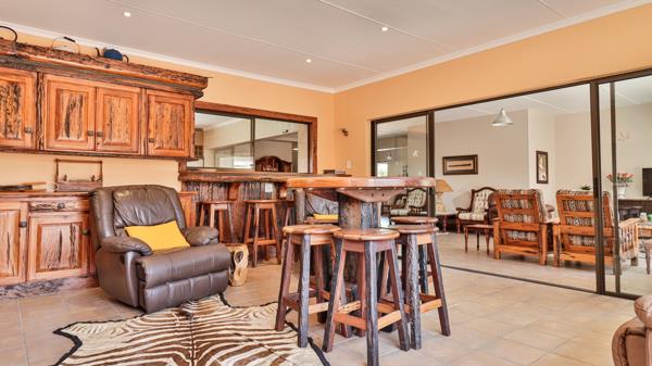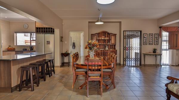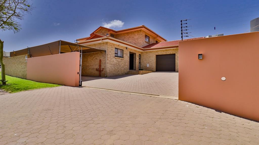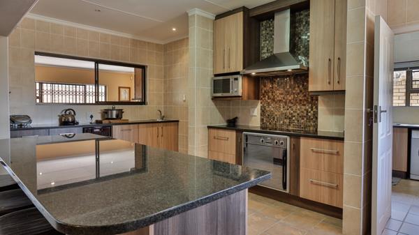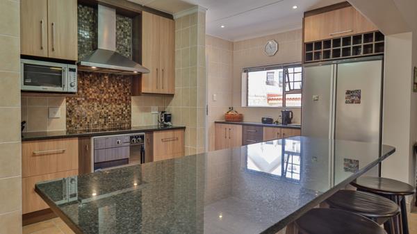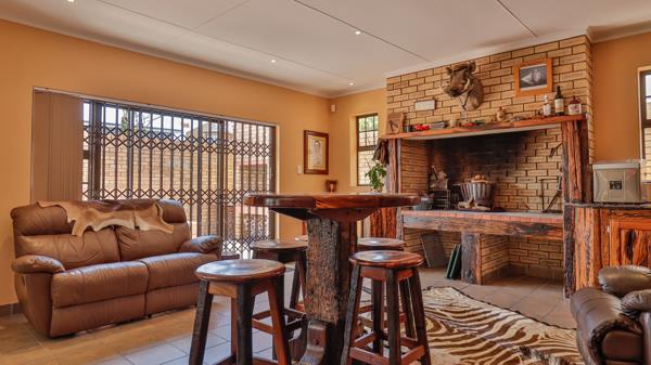 The main suite on ground level is majestic in size with amazing cupboard space, a full bathroom and a fireproof walk-in document- and wine safe. The landing upstairs offers an open area with many possibilities, such as pajama lounge or study. On this level are 3 more bedrooms and 2 bathrooms. The double garage is extra large to accommodate 4 vehicles and there is a double shade net covered carport as well. The property is extremely secure with walls, electrified fencing, alarm, burglar bars and security gates with a complete Solar power system.