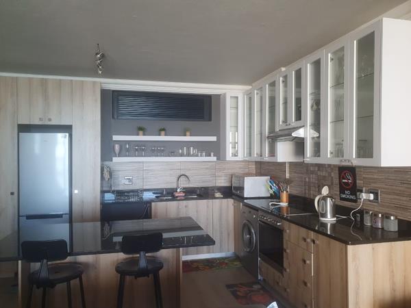 Furniture is included in the sale of this chic open plan apartment with 2 bedrooms and 2 bathrooms. Laminated flooring and the smooth finishing of the units combine to create a sleek, uncluttered and modern feel. The balcony leading off the living area offers a panoramic view of the entire bay, Seal Island and the Mossel Bay harbour.