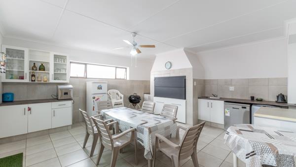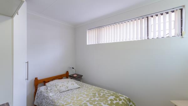This property is set in a serene, tree-filled estate, and a quick stroll from the sea. This is a must view for those with seawater coursing in their veins. On entering this home, you are met with an entertainment room with a built-in braai to keep yourself and guests entertained, informal lounge and an open plan kitchen with ample built-in cupboards. The lower floor also offers two additional bedrooms, of which the master bedroom is en suite, and a full guest bathroom. From the living room, you go up the stairs to three more bedrooms with built-in cupboards and fitted with blinds. One bathroom services the bedrooms on the upper floor. The passage leads out to a balcony perfect to catch your first suntan or simply sit and relax reading a book. The home also comes with parking for two cars with shade.