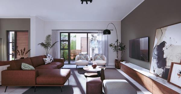 Featured here is a 169m double storey townhouse with 3 bedrooms and 2 bathrooms (m.e.s.) on the upper level. On ground level is an open plan living and dining area, a kitchen, a study, a guest toilet, a patio, a single garage and a parking bay. Optional extras include any of the following: 2nd garage, undercover braai patio, entrance pergola or a PV system.