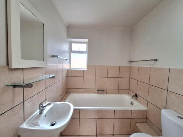 2 comfortable bedrooms with built-in cupboards and laminated flooring. 2 bathrooms including a main en-suite and a second full bathroom.
