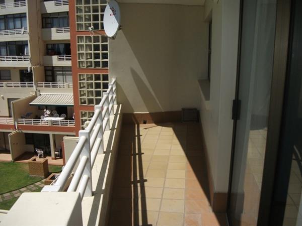 Apartment with 2 bedrooms, 1 bathroom, open plan living area and kitchen, plus a balcony. This unit offers a lovely view over the complex pool and lawns to the ocean, Seal Island and the magnificent mountains in the background. Dedicated shade net parking.