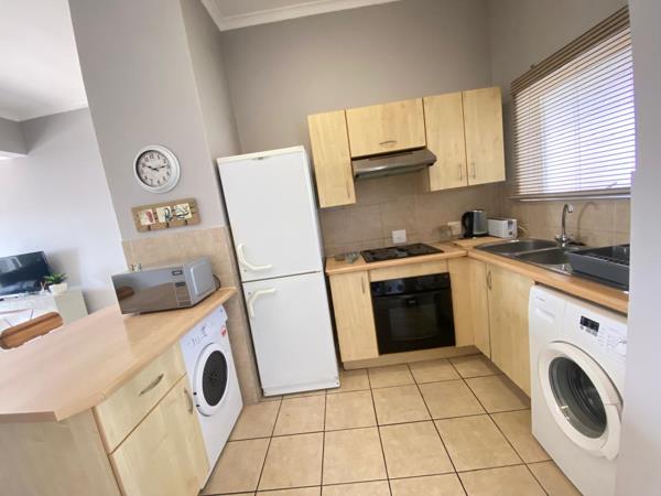 Second floor apartment just 150m from the beach. The open plan living area opens to a pleasant undercover balcony with built-in braai. A full bathroom services both bedrooms. The apartment comes with furniture included. A shade net covered parking bay is allocated to this unit.