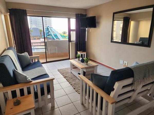 Discover the ultimate seaside sanctuary in the coveted De Valle complex! This chic, fully furnished two-bedroom apartment offers breathtaking panoramic sea views of Diaz Main Beach and Seal Island, nestled just 50 meters from the beach and water slides, this third-floor treasure blends coastal living with unbeatable investment potential. Step inside to find two spacious bedrooms with ceiling fans, a modern bathroom, and an open-plan kitchen and living space that flows effortlessly onto a private balcony that overlooks the communal gardens, swimming pool and the ocean. The well-equipped kitchen includes all the essentials, while the cozy lounge with a sleeper couch and flat-screen TV is perfect for unwinding. Entertain on the balcony with a gas braai and seating for fiveideal for enjoying the stunning vistas!