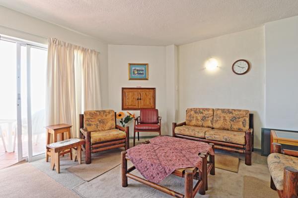 Beachfront apartment with panoramic sea view. Open plan design with 2 en suite bedrooms. Sea-facing covered braai balcony provides a secluded spot from where to enjoy the view. The main bedroom also enjoys the magnificent view of the entire bay. A welcome bonus is a lock-up garage, plus extra open visitor''s parking.