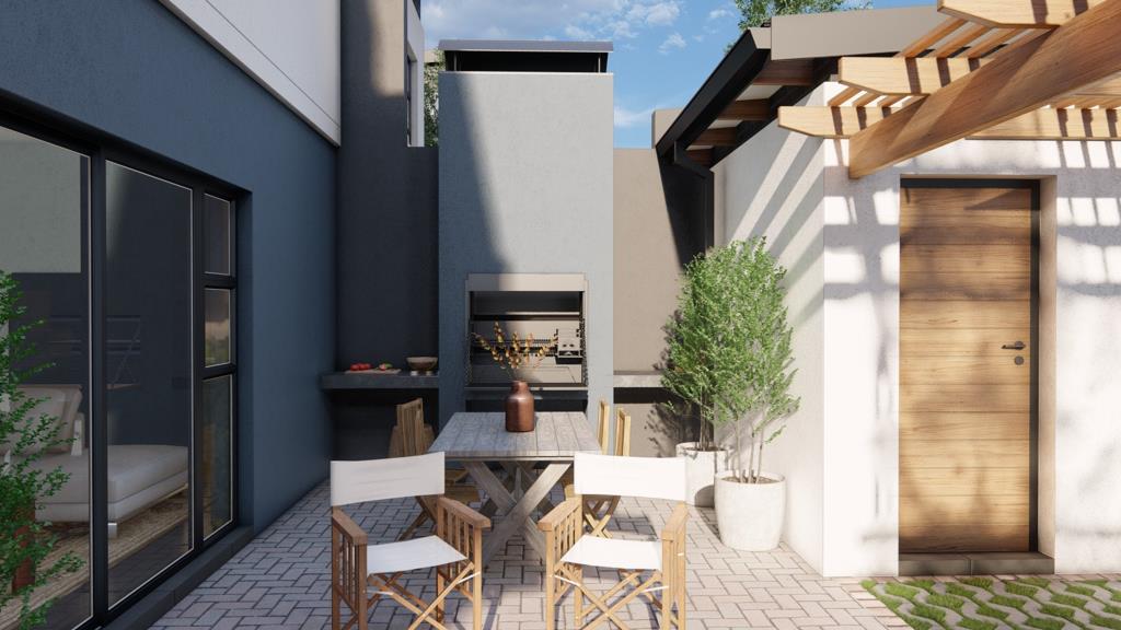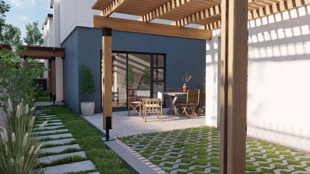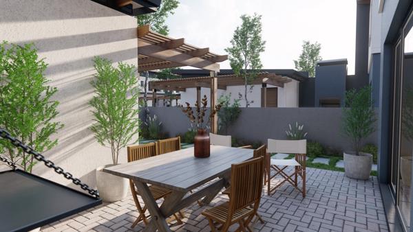 Featured here is a 112m² double storey townhouse with 2 bedrooms and 2 bathroom on the upper level. On ground level is a lounge, kitchen with scullery and a single garage. A choice of optional extras include a carport, an undercover braai patio, an entrance pergola and a PV system.
