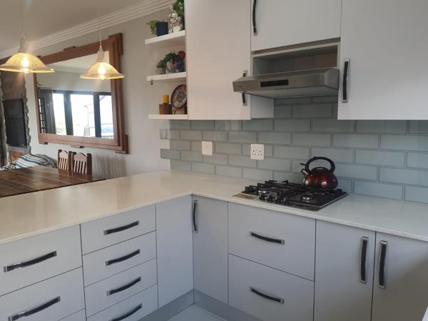 Double storey home beautifully finished with quality fittings and features. The open plan braai room/living area opens onto a sunny covered patio from where one can enjoy the view of the river and green hills beyond. Upstairs are 3 bedrooms and 2 bathrooms. The 2 front bedrooms also look out onto the lovely views.