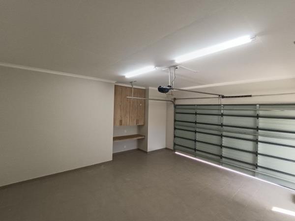 The house is fully fenced with automated gate and garage. Plenty of paving in front of the garage for visitors parking. There is extra domestic bathroom on the side of the building. The extra large double garage is tiled and have PVC ceilings. It also offers built in cupboards and a workspace. Through the beautiful entrance and spacious reception area one find a beautiful and stylish staircase that leads to the upper level. On ground level one finds 2 spacious bedrooms with plenty of cupboards and laminated flooring. The spacious bathroom on ground level is stylish and modern. There is plenty of space in the hallway for an extra work area.