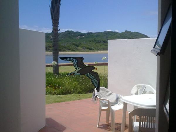 This is a ground-floor unit with 3 bedrooms, 2 bathrooms, and an open-plan kitchen with sliding doors that open onto a patio. a Green lawn adds space for children to run around while the parents enjoy an outdoor braai and view the bird life on the river.