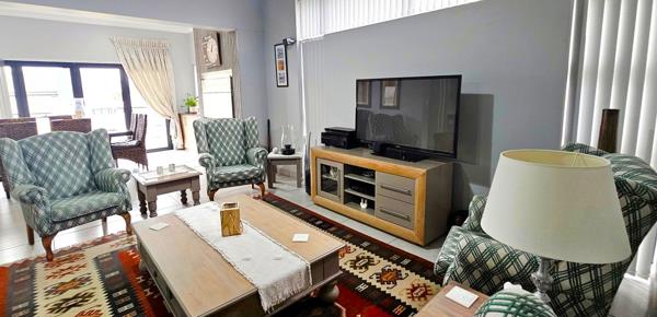 Enjoy easy access to all Hartenbos amenities from this prime location. The home boasts three bedrooms, two bathrooms, and an inviting open-plan living area with exposed ceilings, providing ample space for both a TV and dining room. Entertain with ease thanks to a built-in braai and stacking doors that open directly onto the private, fully enclosed backyard perfect for outdoor enjoyment.