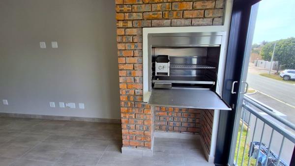 Spacious open-plan layout with modern kitchen, dining area, and lounge featuring a built-in braai.
