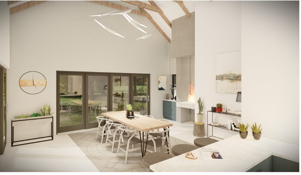 Single level 3 bedroom, 2 bathroom home proposed for a stand bordering on a green belt. The house is designed in the Cape Vernacular architectural style and features open plan living areas, an indoor braai, kitchen with scullery and double garage. Buying plot and plan offers the advantage of being instrumental in choosing final finishes as well as paying no transfer duties.