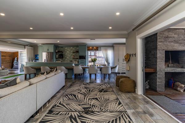 Peace of mind is paramount, with 24-hour security, an alarm system, and CCTV ensuring a secure environment. The property is future-ready, featuring solar panels and a battery inverter for energy efficiency, complemented by high-speed fibre connectivity. Nestled in a tranquil cul-de-sac, this holiday home offers direct access to the coastal beach lifestyle of Hartenbos. It presents an ideal escape for those seeking a luxurious seaside retreat in South Africa.