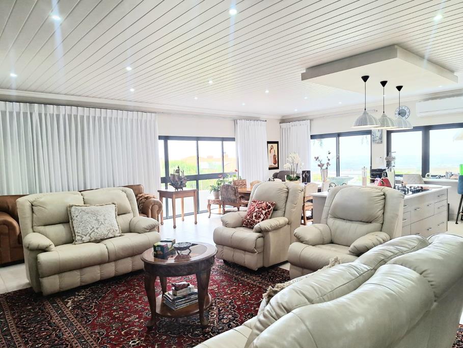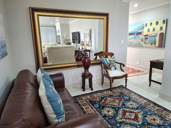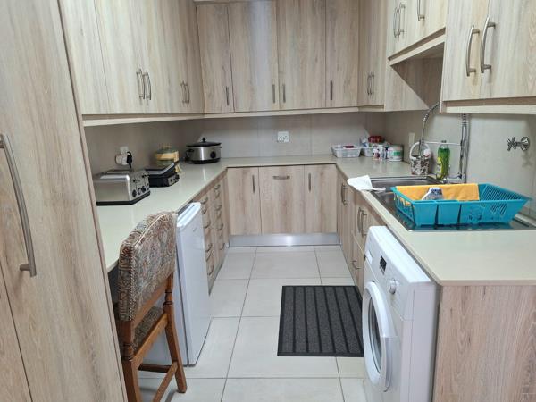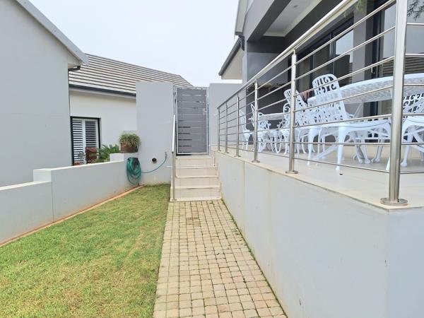 This stylish home has a large open plan space that accommodates living areas, a dining area with indoor braai and a modern kitchen. The scullery is provided with plenty of cupboards and leads to an enclosed yard. There are 3 bedrooms, 2 bathrooms and a double garage. The very spacious main bedroom has a walk-in closet with a plenty of cupboard space. Extras include window blinds, air conditioner, solar panels with inverter and a water tank. The property also offers lovely distant sea view.