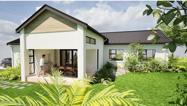 Covered patio offers a retreat with built-in braai for perfect relaxing and entertaining. Enjoy the soothing sounds of nature and the gentle sea breeze.