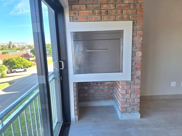 This modern second-floor apartment features an open-plan layout with numerous added benefits. The living area includes a built-in stainless steel braai, perfect for entertaining, while the contemporary kitchen boasts a premium Smeg gas stove for culinary convenience.