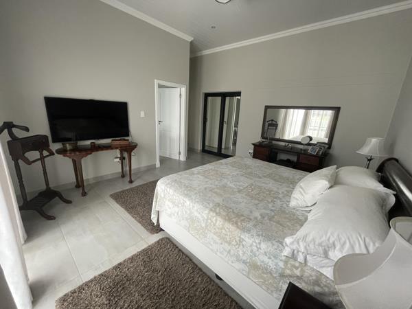 A separate entrance leads to a fully equipped, ensuite 4th bedroom (approximately 45 sqm of the total 290), which could also serve as a formal office, studio, hobby room, or even a rental income opportunity. This private living area boasts stunning views of the sea, Hartenbos, and the Mossel Bay mountain range.