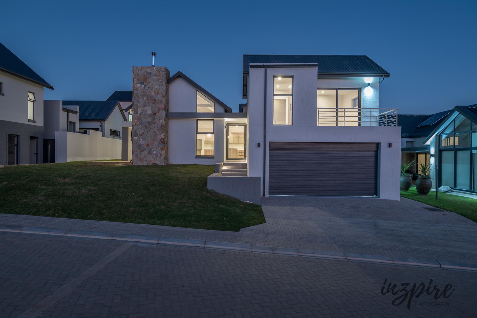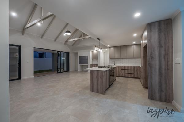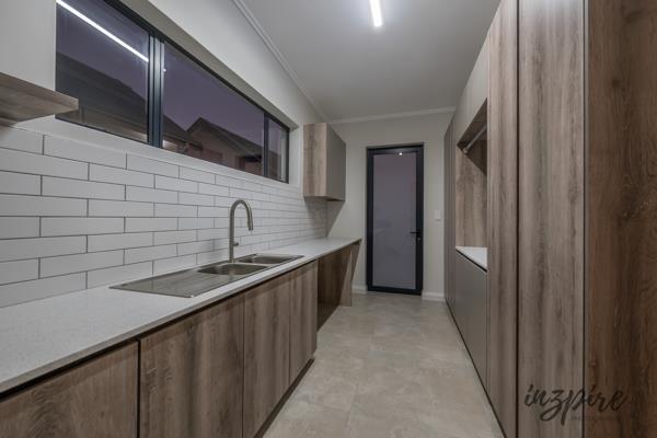 As you enter, youre welcomed by an expansive open-plan living area that seamlessly combines a stylish family lounge, dining space, and a built-in braai ideal for effortless entertaining. To the left, a sleek modern kitchen with a separate scullery offers both functionality and style. On the right, a covered patio invites you to enjoy relaxed outdoor living with beautiful estate views.