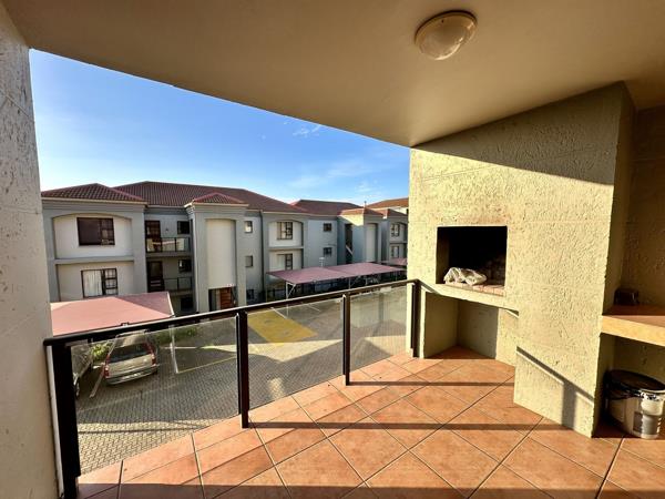 Glass sliding doors lead out from the living area to a private, covered balcony your own outdoor haven complete with a built-in braai, where you can unwind with friends or soak in the peaceful surroundings.