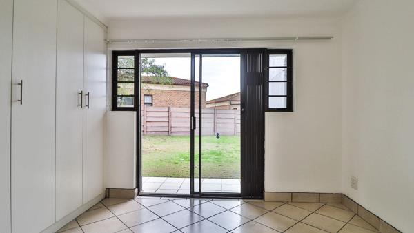 The open-plan living area seamlessly flows onto a spacious verandah, perfect for entertaining or relaxing. From the verandah, enjoy direct access to lush green grass and a designated braai area, creating an inviting outdoor space for gatherings and leisure.