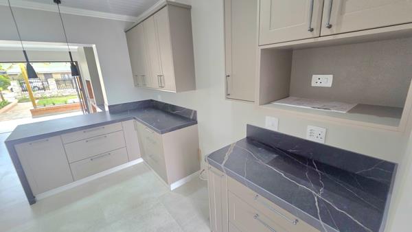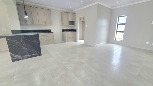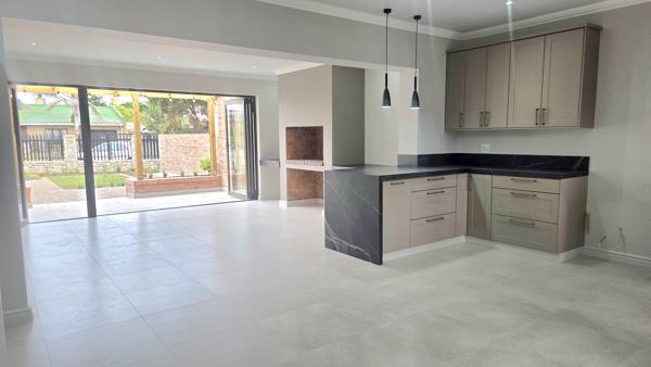 This brand-new, modern residence in Hartenbos Central features a contemporary design with high-end finishes and a seamless indoor-outdoor flow.