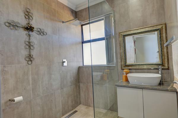 Functionality is enhanced by a double garage as well as two additional open parking bays, offering ample space for family vehicles and guests. Every practical detail has been considered, making this home ideal for permanent residence, a holiday retreat, or a secure investment in a high-value estate.